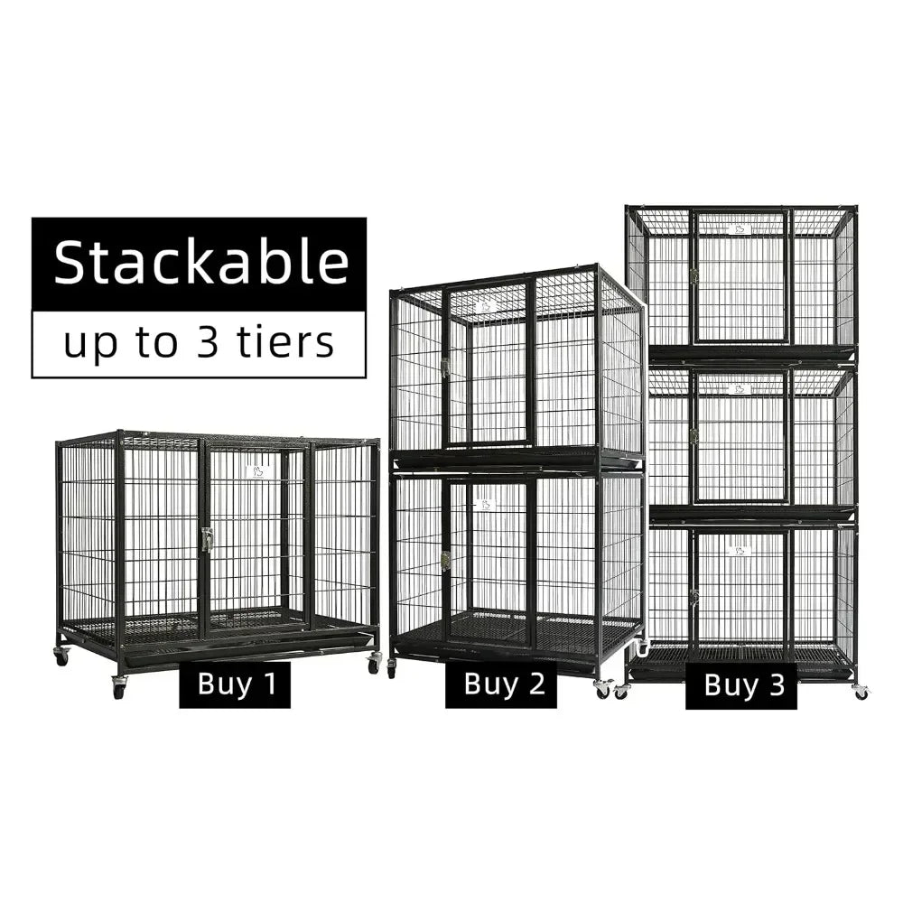 37 Inch Stackable Open Top Heavy Duty Dog Crate With Wheels